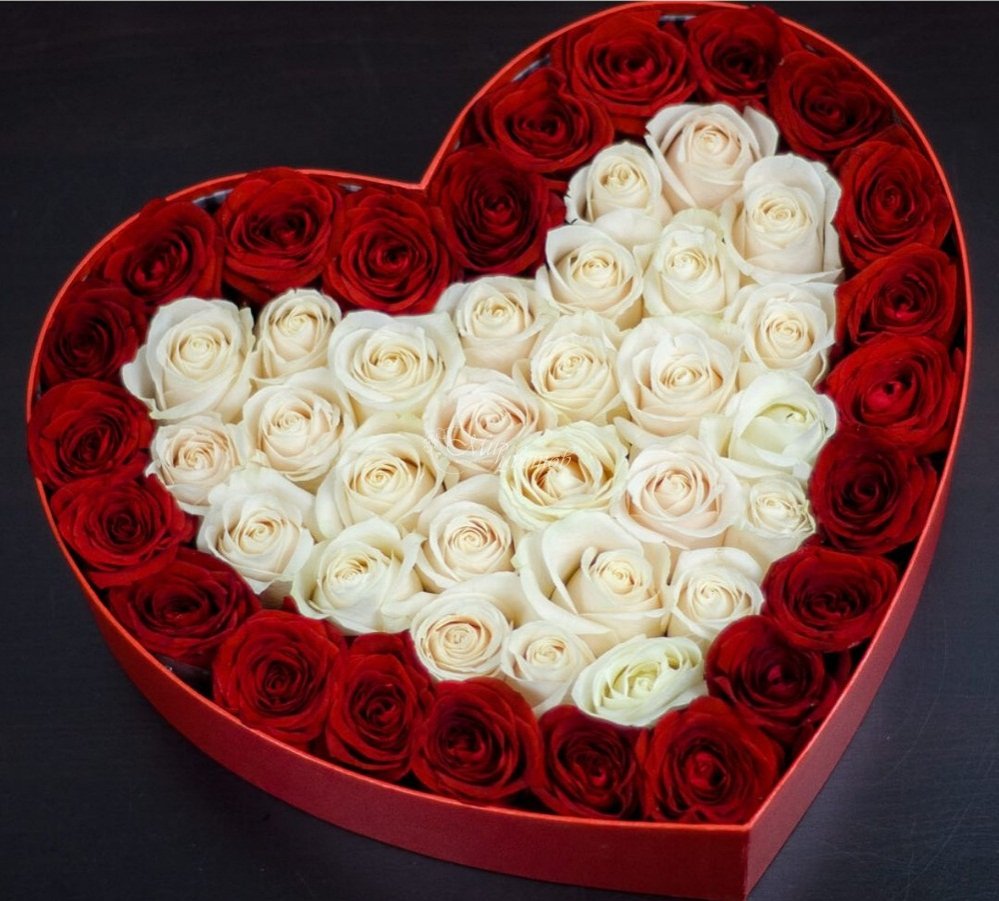 Коробка Роза бордовая 23 шт Роза белая 28 шт