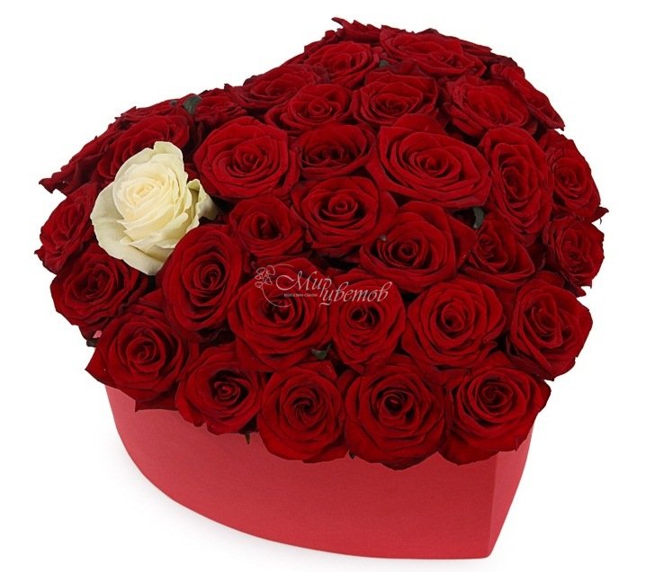 Коробка Роза бордовая 50 шт Роза белая 1 шт