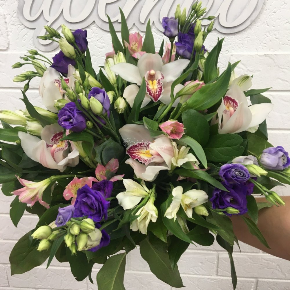 Орхидея Эустома Альстромерия Зелень Лента атлас