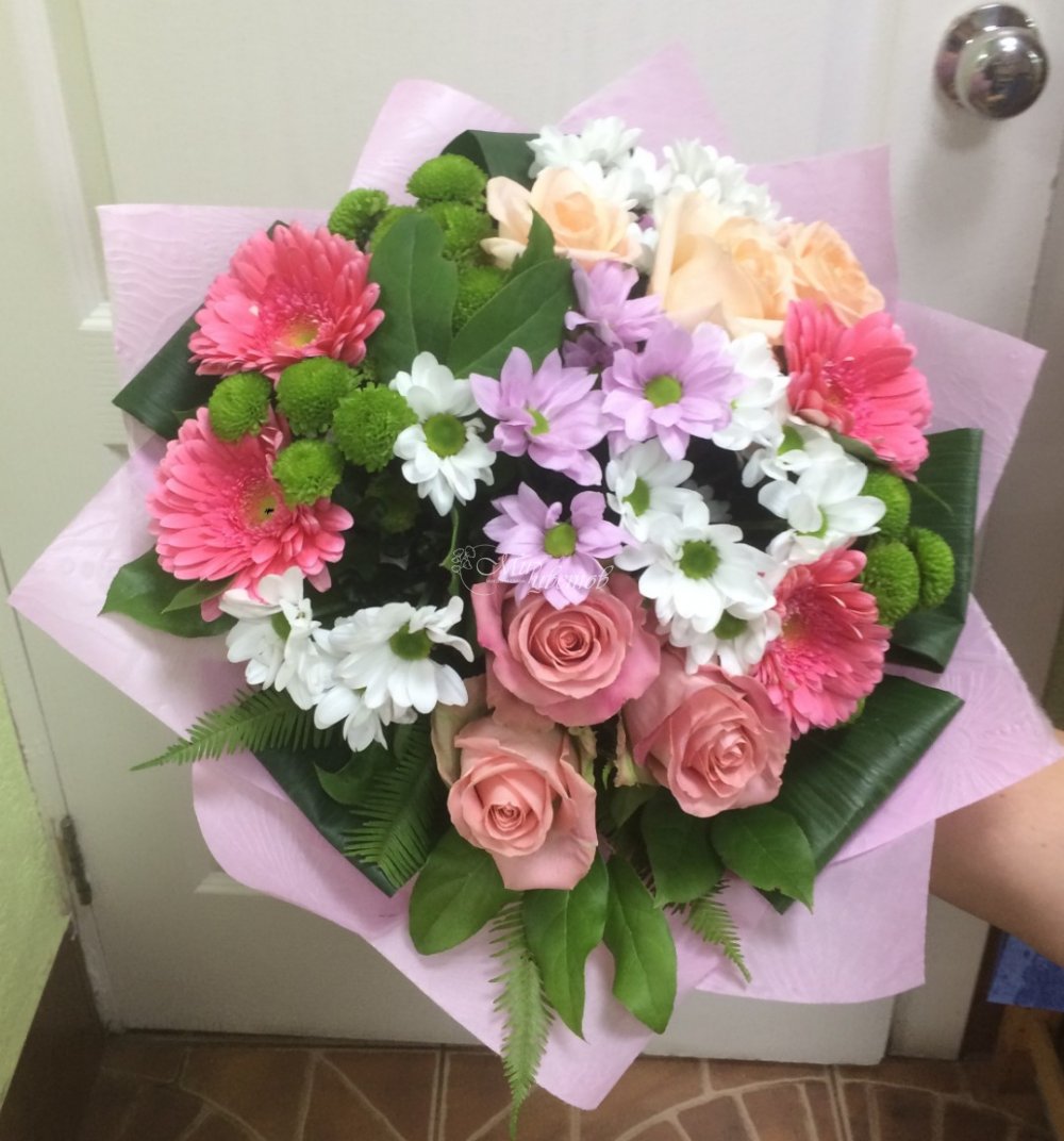 Букет из нежных роз и хризантем, эустомы для любимой мамы