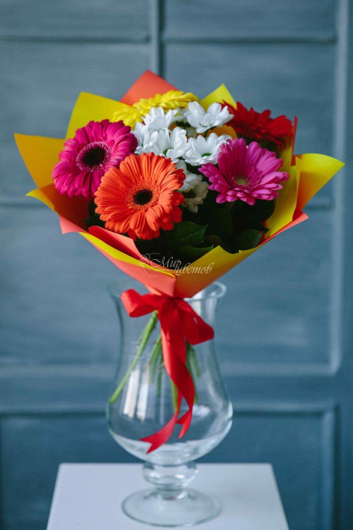 Букет из герберы и хризантемы, всегда поднимет настроение