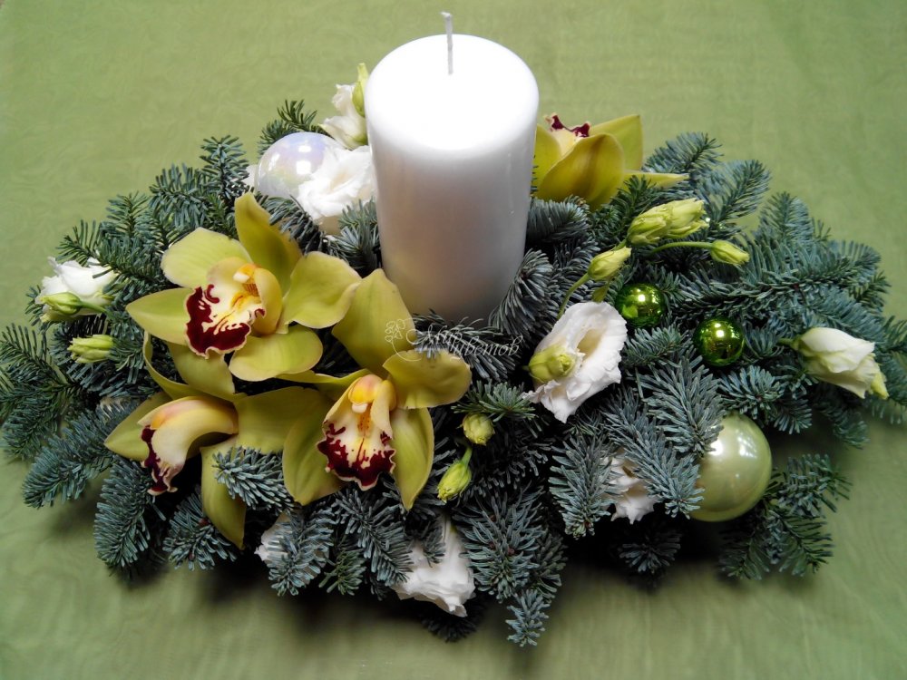 Нобилис Цимбидиум - 5 шт Эустома - 2 шт Свеча - 1 шт Шары новогодние
