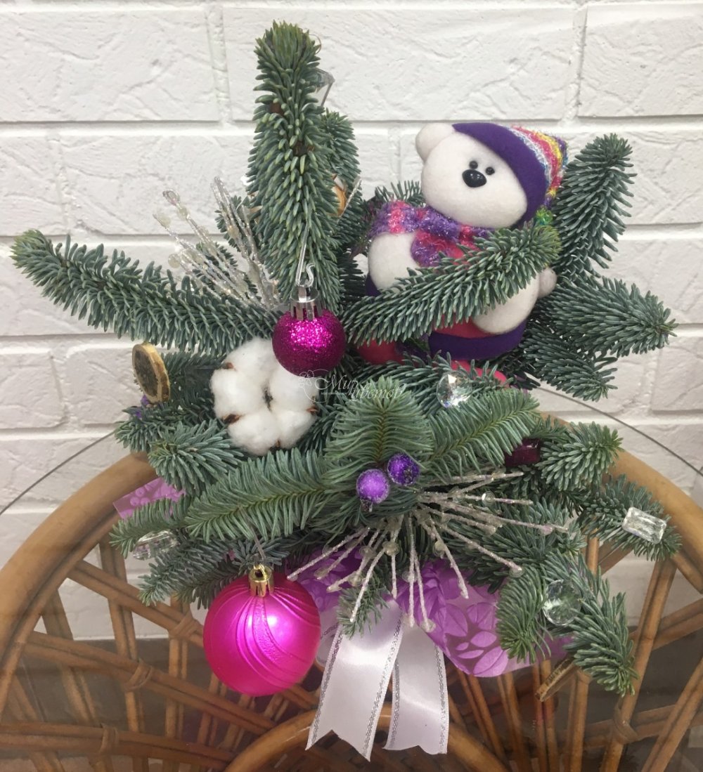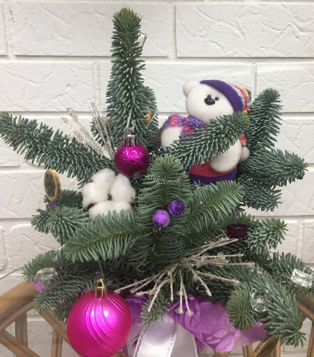 Кашпо - 3 шт Свечи - 3 шт Роза белая - 9 шт Эустома - 9 шт Хризантема кустовая - 6 шт Зелень Фрукты по вашему желанию Возможен заказ одной композиции стоимость 6500