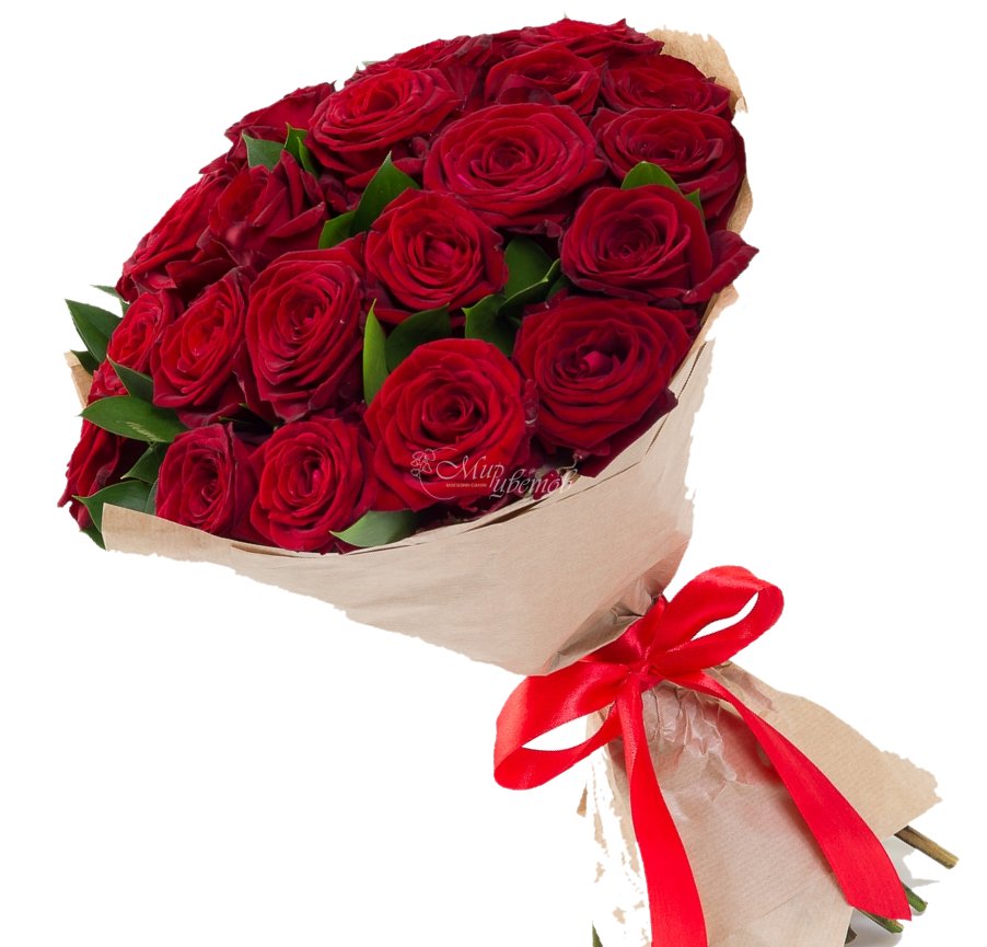 Роза алая - 15 шт Рускус Бумага крафт Лента атлас