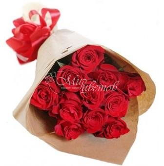 Роза бордовая Бумага крафт Лента атлас