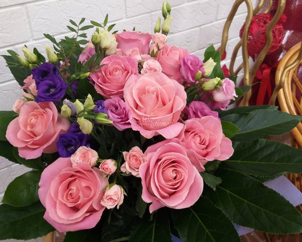 Оригинальный букет из розы и эустомы сделает этот день счастливым