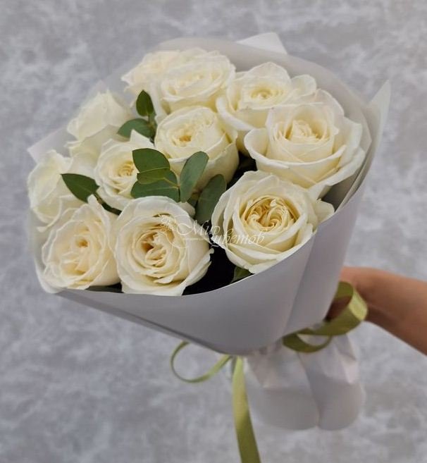 Роза белая Эвкалипт Пленка матовая Лента атлас