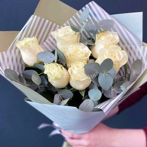 Роза белая Эвкалипт Пленка матовая Лента атлас