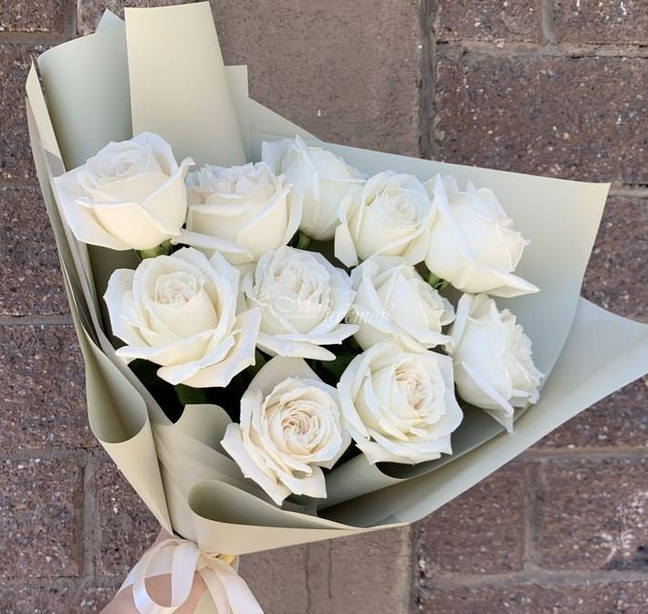Роза белая Пленка матовая Бумага тишью Лента атлас