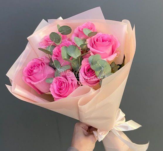 Роза розовая Эвкалипт Пленка матовая Бумага тишью Лента атлас
