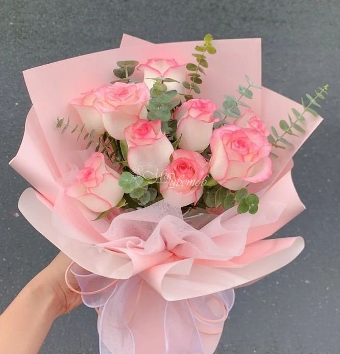 Роза розовая Эвкалипт Пленка матовая Бумага тишью Лента атлас