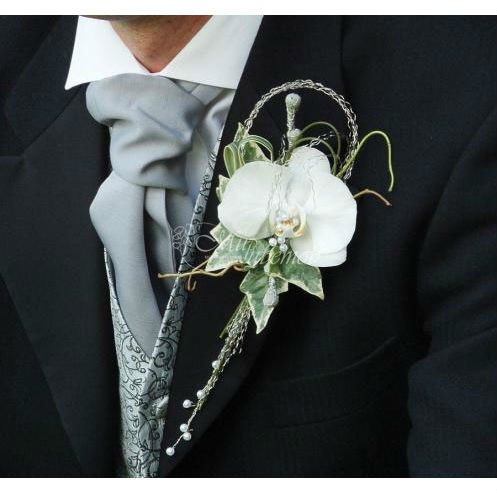 Бутоньерка жениха подбирается из стиля фасона и тематики свадебного букета невесты