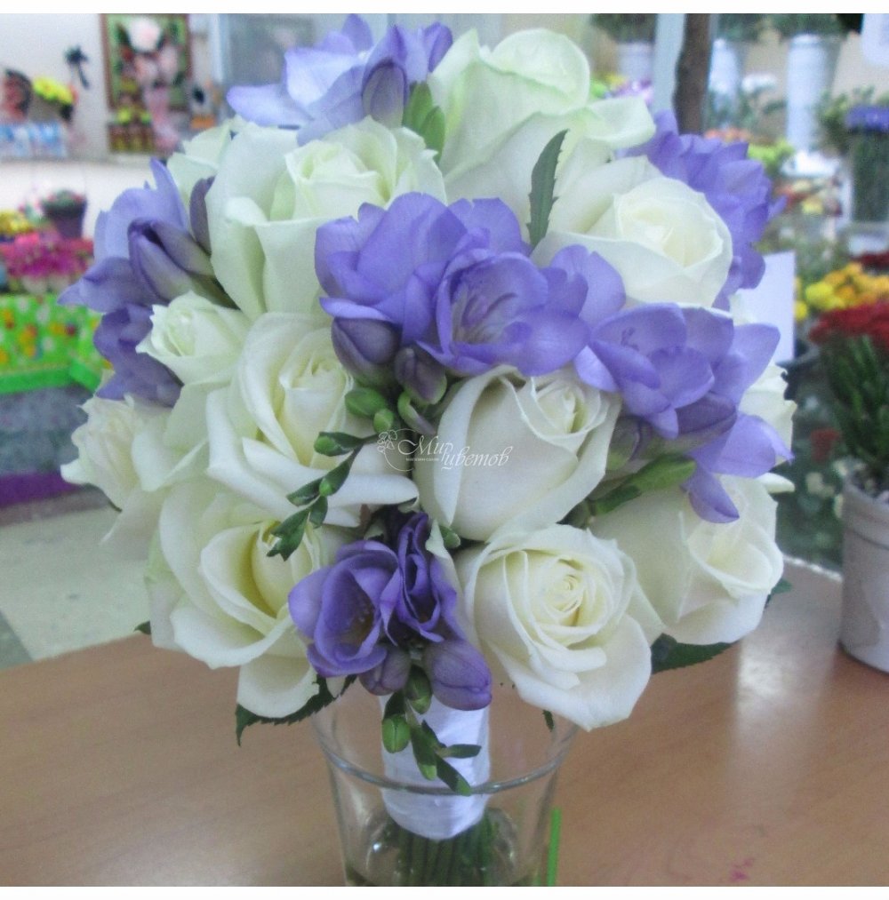 Букет невесты из белой розы и белой фрезии