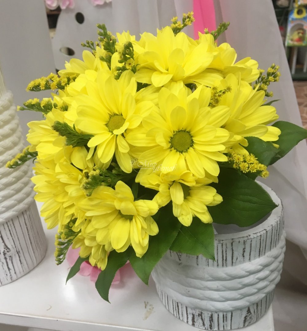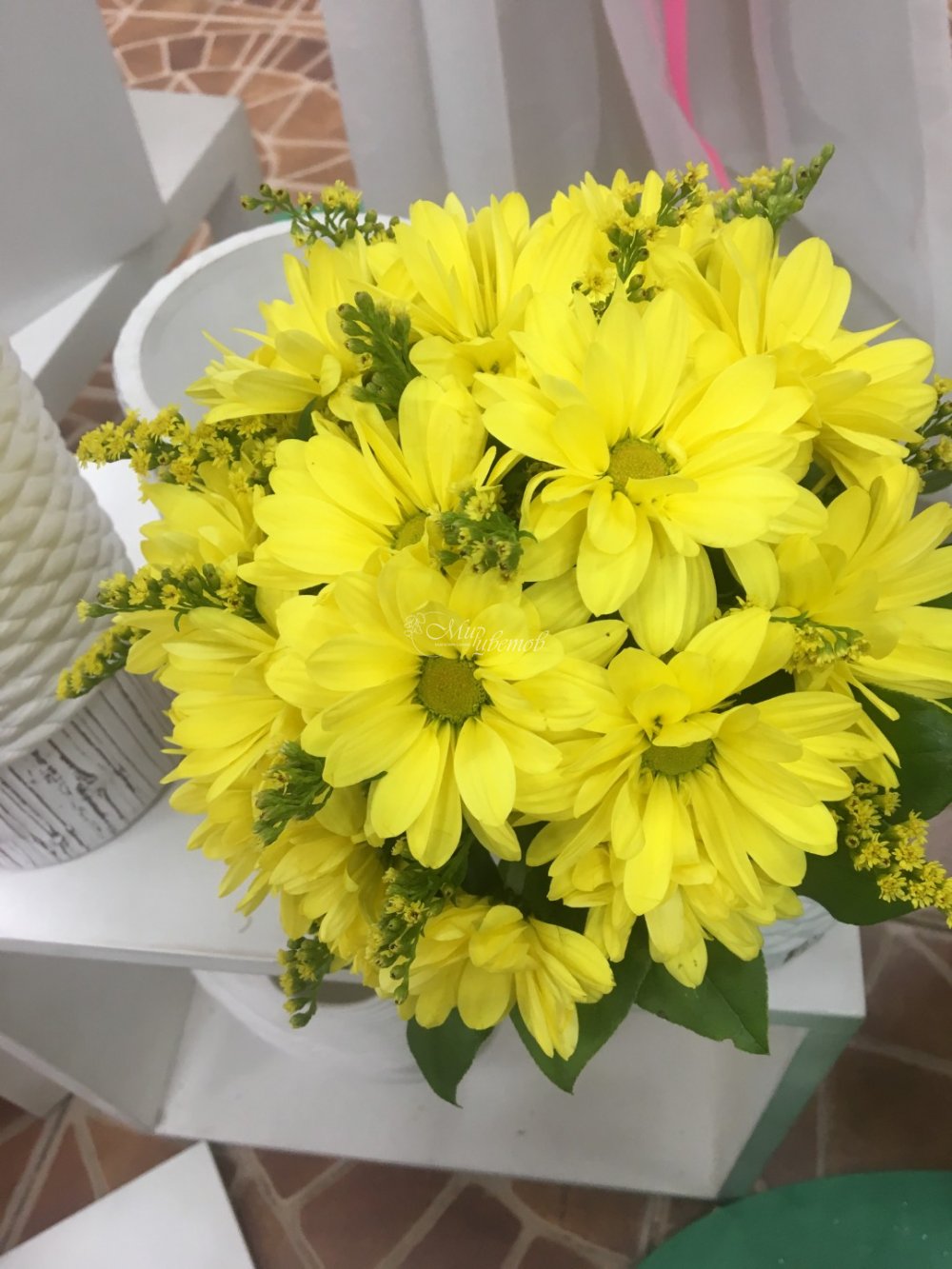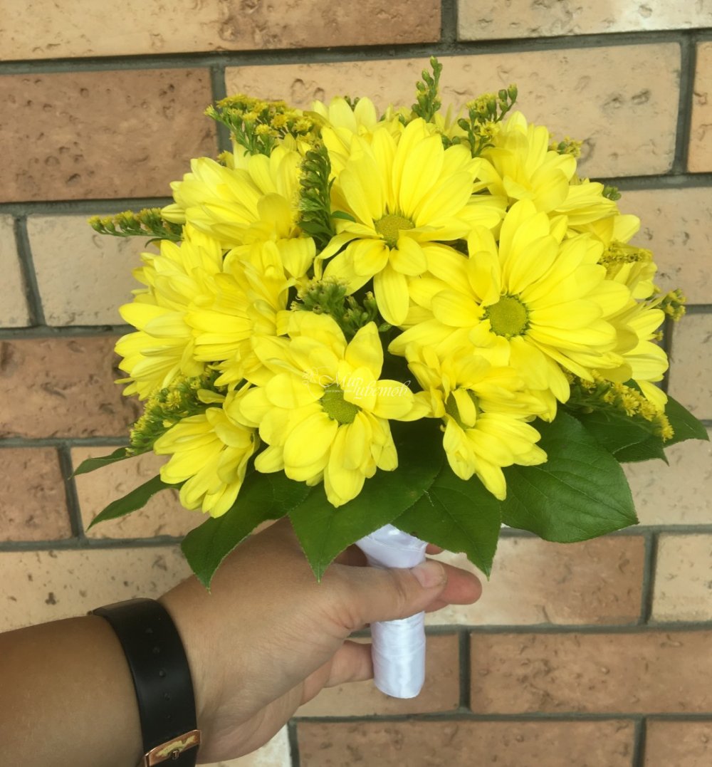 Хризантема Бакарди желтая Солидага Зелень Лента атлас