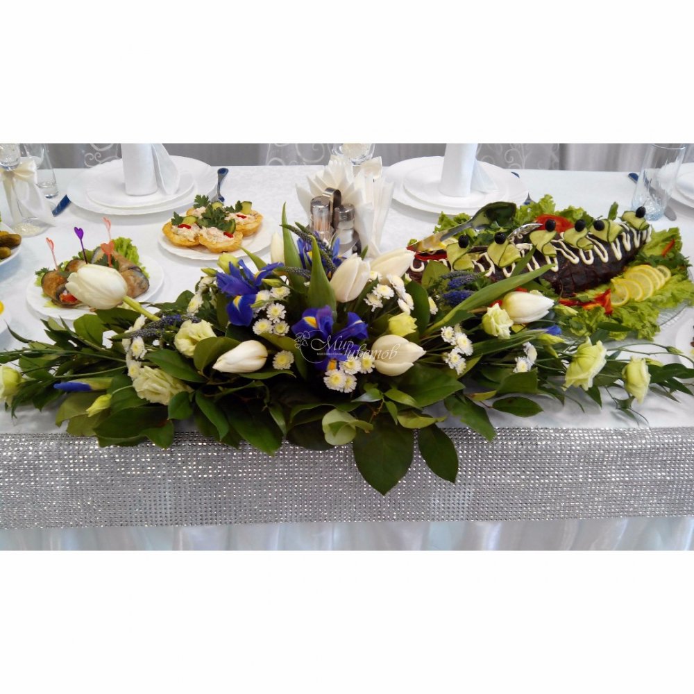 Ирисы Тюльпаны белые Эустома Хризантема кустовая Рускус Салал